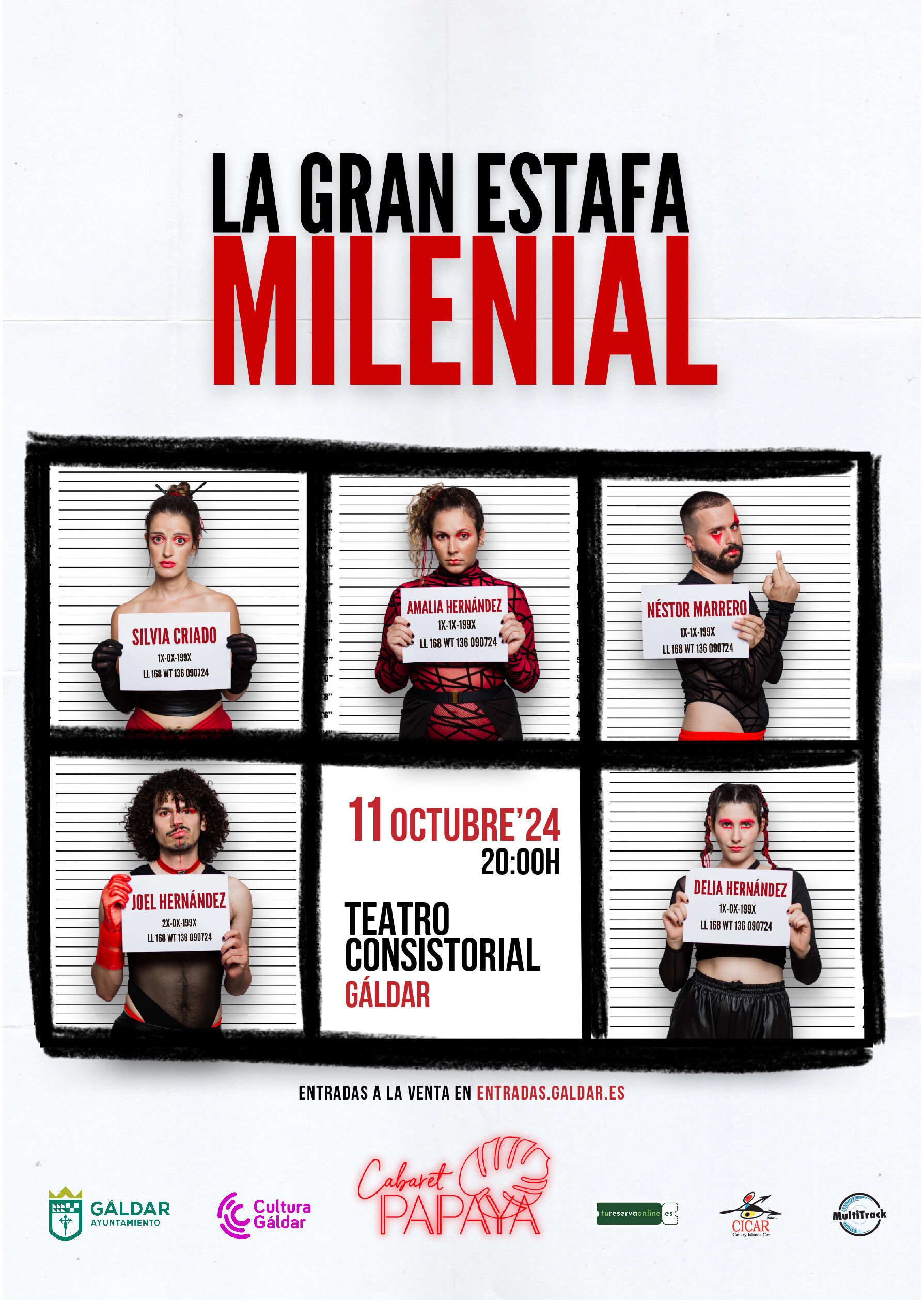 «La Gran Estafa Milenial» es una historia de lucha y resistencia que representa a artistas precarizados y empobrecidos que luchan contra un sistema que les niega oportunidades. Su deseo de crear su propio teatro es un acto de rebelión contra la injusticia y la marginalización a la que se enfrentan en la industria cultural. Es una celebración del poder del arte para trascender las barreras. Un recordatorio de que, a veces, las mejores historias se escriben entre risas y lágrimas, entre robos y sueños. Pero no se preocupen, no sólo usurparán bienes materiales, sino que también robarán al público una noche inolvidable cargada de diversión. ¿Quieres ser nuestro cómplice?