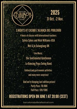 Detalls del Full Pass: Totes les classes se centraran en el ball social, treballant els elements que el fan més agradable i fidel a la cultura que el va crear. Explorarem una connexió natural i autèntica entre leader i follower, en lloc de figures coreografiades.